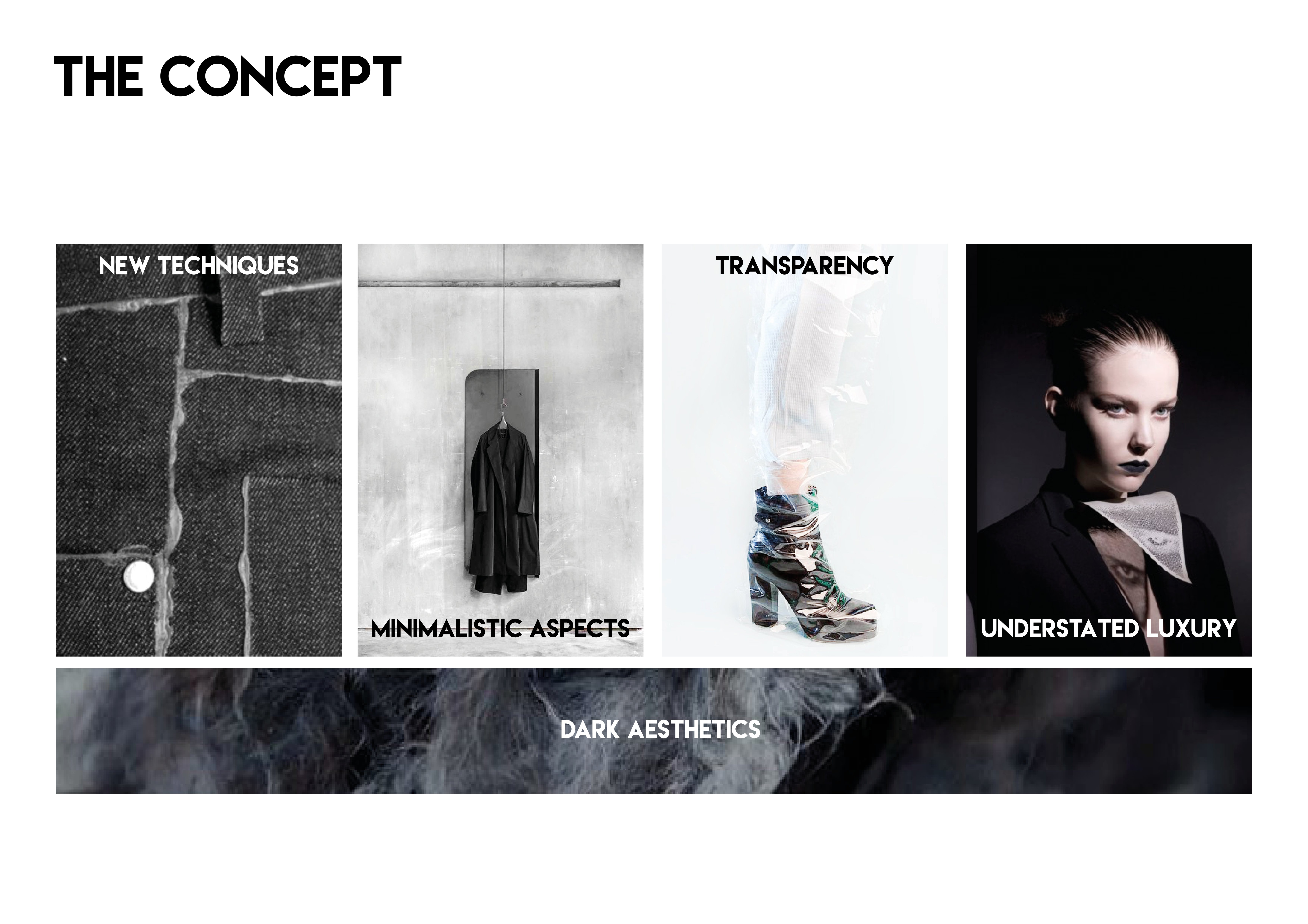 In my team I was partly responsible for the development of the concept. By doing a lot of research and brainstorm meetings we eventually created a very sustainable brand which sells cradle to cradle products. We invented a way to use filtered smog as a textile dye for clothes that is safe for the consumer. Important brand values are: New Technologies, Minimal Aspects, Transparency, Understated Luxury and Dark Aesthetics.
